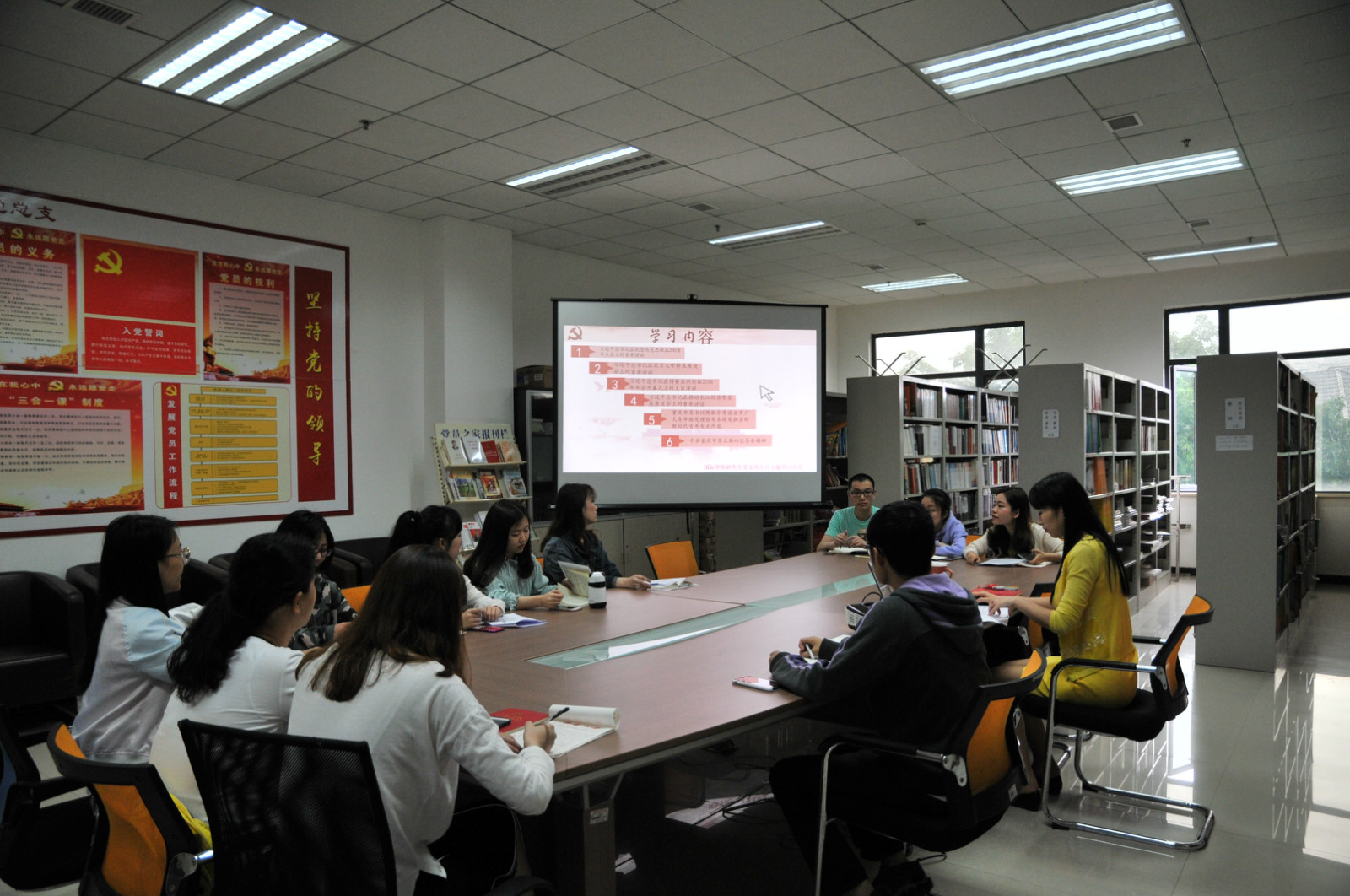 2018年5月11日下午3点,国际公司党总支研究生第一、第二党支部在紫云楼“党员活动室”(316室)开展了联合主题党日活动。本次活动由研究生第一党支部支部书记陈雨曦以讲党课的形式展开。