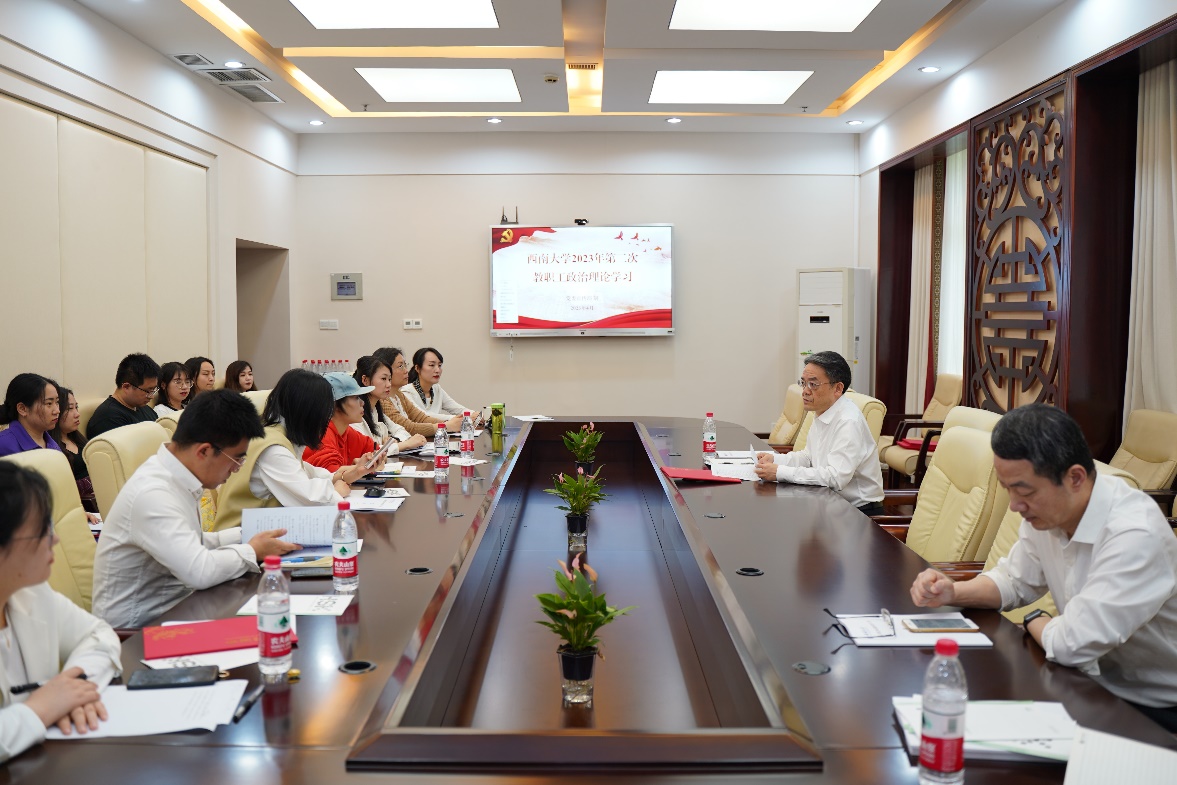 2023年4月14日下午3点,太阳成集团tyc122cc全体教职员工在紫云楼签约室参加本年度第二次政治理论学习,根据《中共122cc太阳成集团官网委员会教职工政治理论学习实施意见》和公司工作安排,本次政治理论学习由邱睿、白小丽、冯雪、王菁组成的第四组主讲人团队承担,会议由刘猛书记主持。