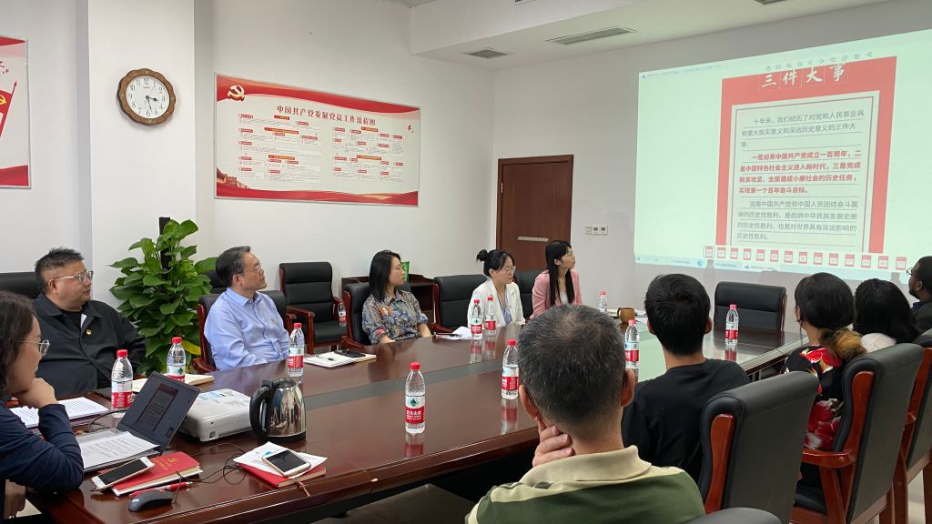 10月21日下午3点,在太阳成集团tyc122cc紫云楼304会议室,教工第二党支部召开主题党日活动,学习领会党的二十大精神,热议党的二十大报告,来自国家治理公司的4名国际员工代表特邀参加。