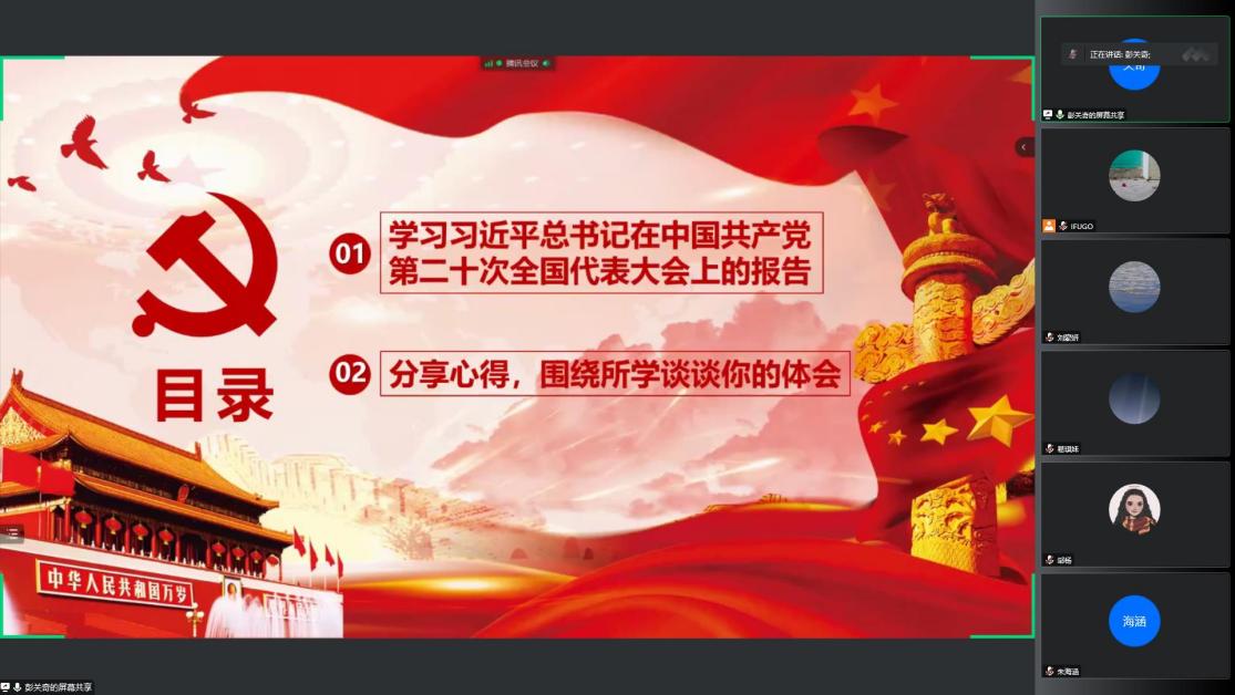 10月20日下午15:00,研究生第一党支部在公司316会议通过线上线下的方式,开展“学习领会党的二十大精神”主题党日活动。会议由汪鑫阳同志主持。