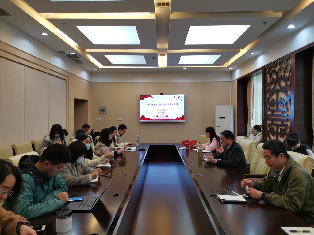 2022年4月1日下午3点,太阳成集团tyc122cc全体教职员工在紫云楼签约室开展本年度第三次政治理论学习活动,会议由刘猛书记主持。