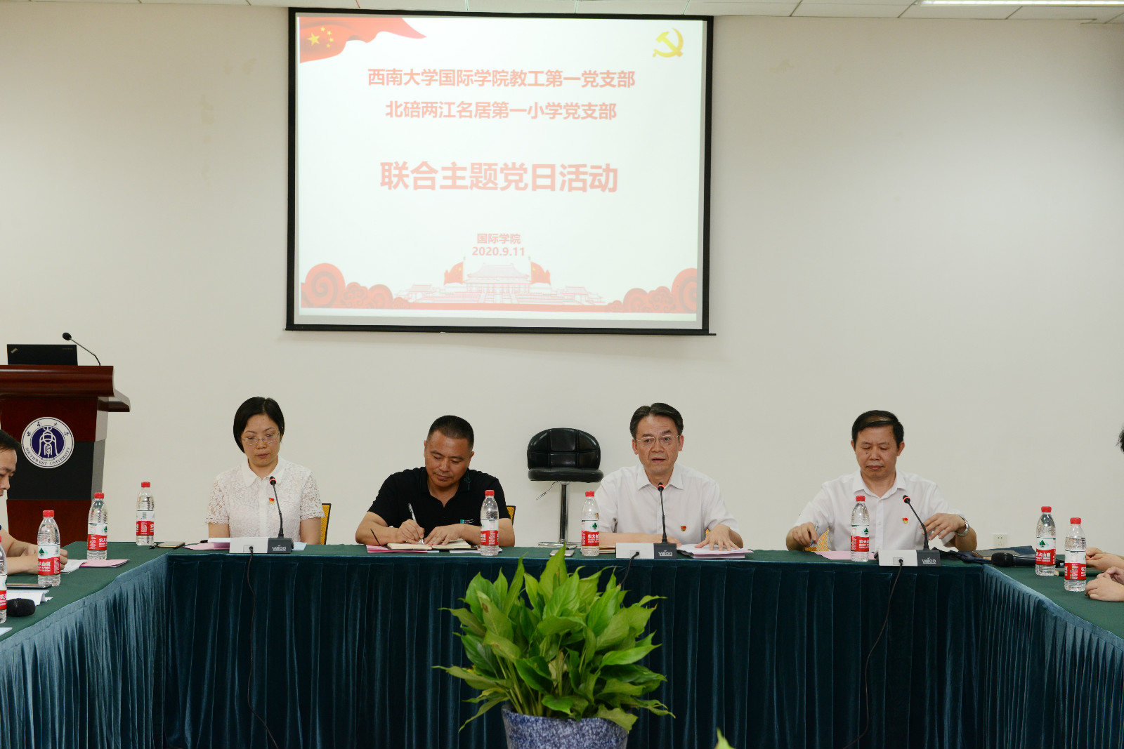 2020年9月11日下午3:00,太阳成集团tyc122cc教工第一党支部与北碚两江名居第一小学党支部在太阳成集团tyc122cc317室联合举办主题党日活动,双方共计36名党员参会,会议由支部书记邱睿同志主持。