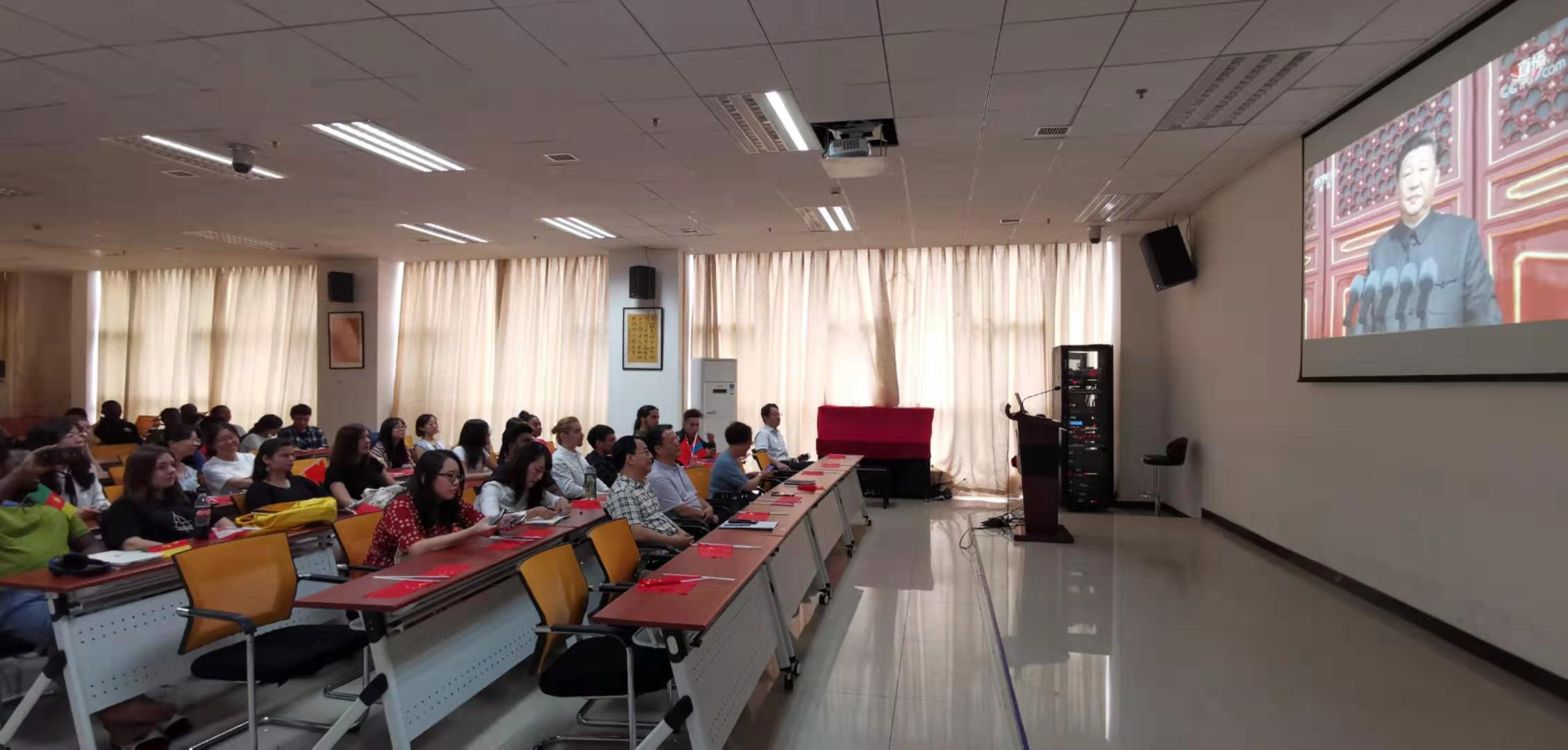 2019年10月1日上午,太阳成集团tyc122cc的中外师生齐聚紫云楼317室,一同观看了中华人民共和国成立70周年庆祝大会现场直播。