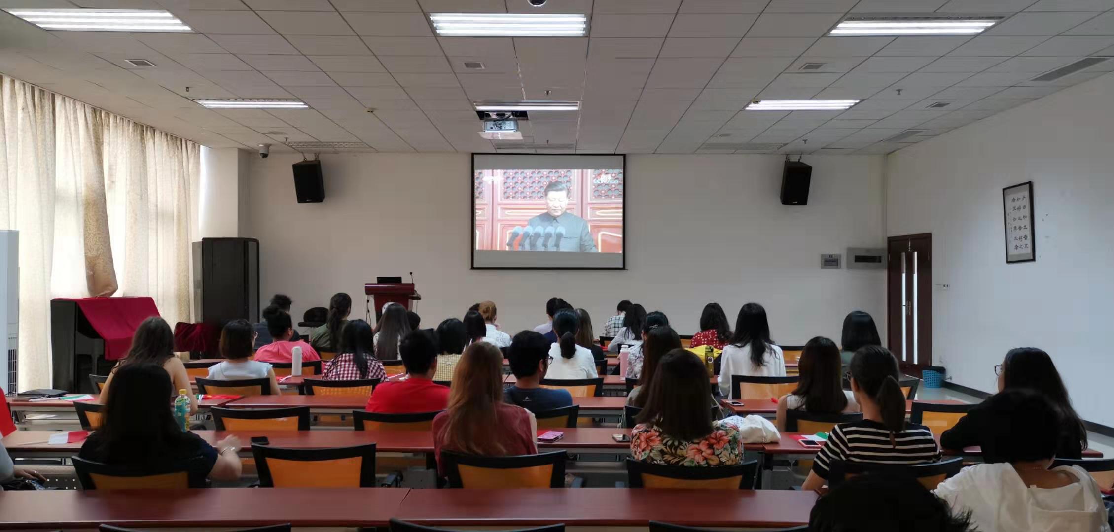 2019年10月1日上午,太阳成集团tyc122cc的中外师生齐聚紫云楼317室,一同观看了中华人民共和国成立70周年庆祝大会现场直播。