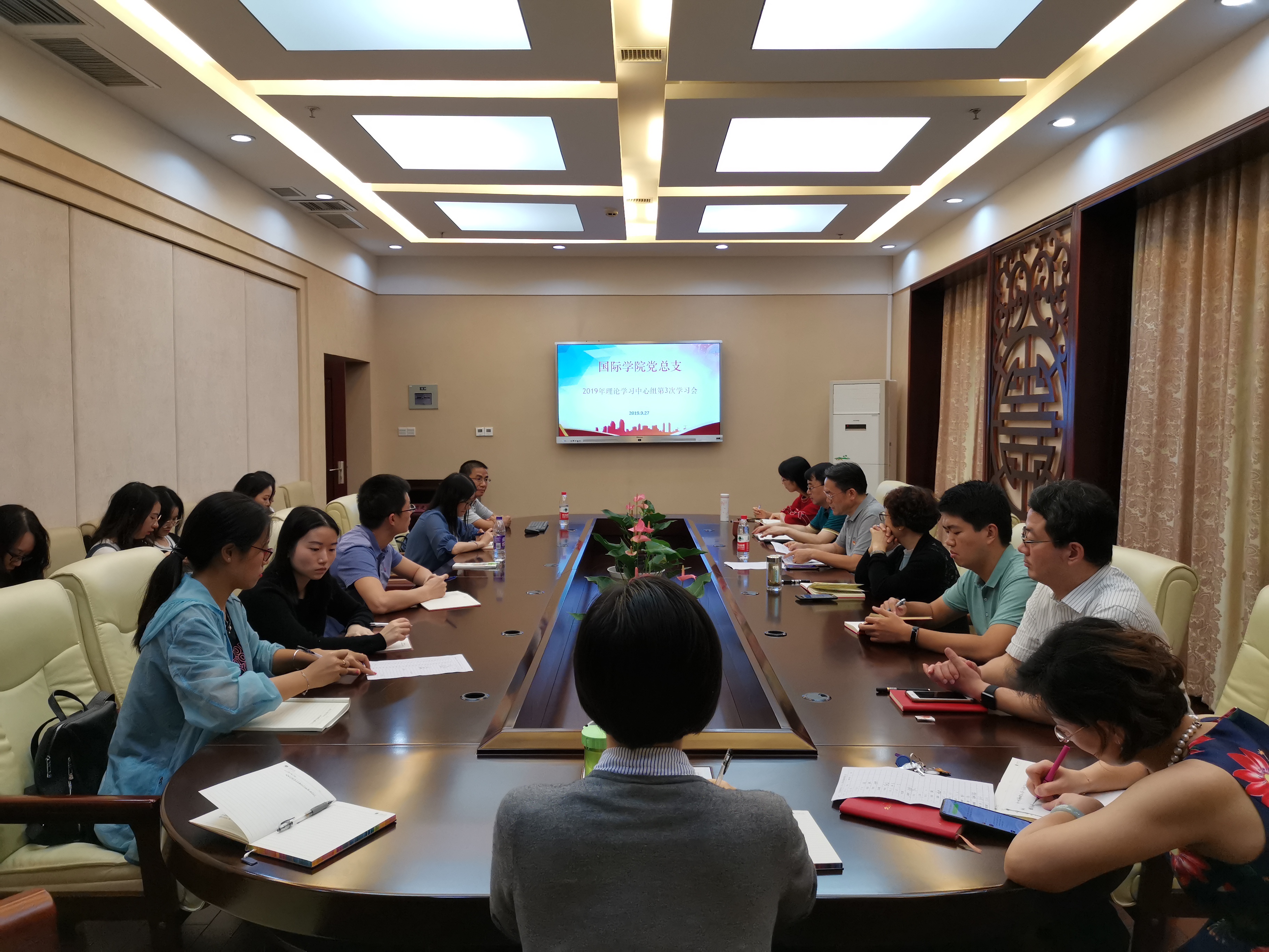 2019年9月27日下午2:30,国际公司党总支“不忘初心,牢记使命”理论中心组(扩大)学习会在紫云楼签约室召开。公司党总支委员、非党总支委员院领导、4个支部的支委班子成员以及入党积极分子参加了此次学习会。会议由党总支书记刘猛同志主持。