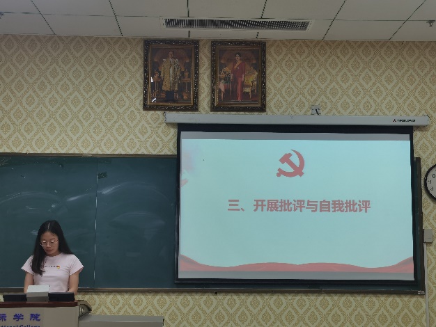 接着,全体党员同志积极开展批评和自我批评。批评过程真诚实在,批评内容不“假大空”,每位同志都深刻分析了当前阶段自身存在的问题,在会议上互提建议,使得整改方向更加明确。