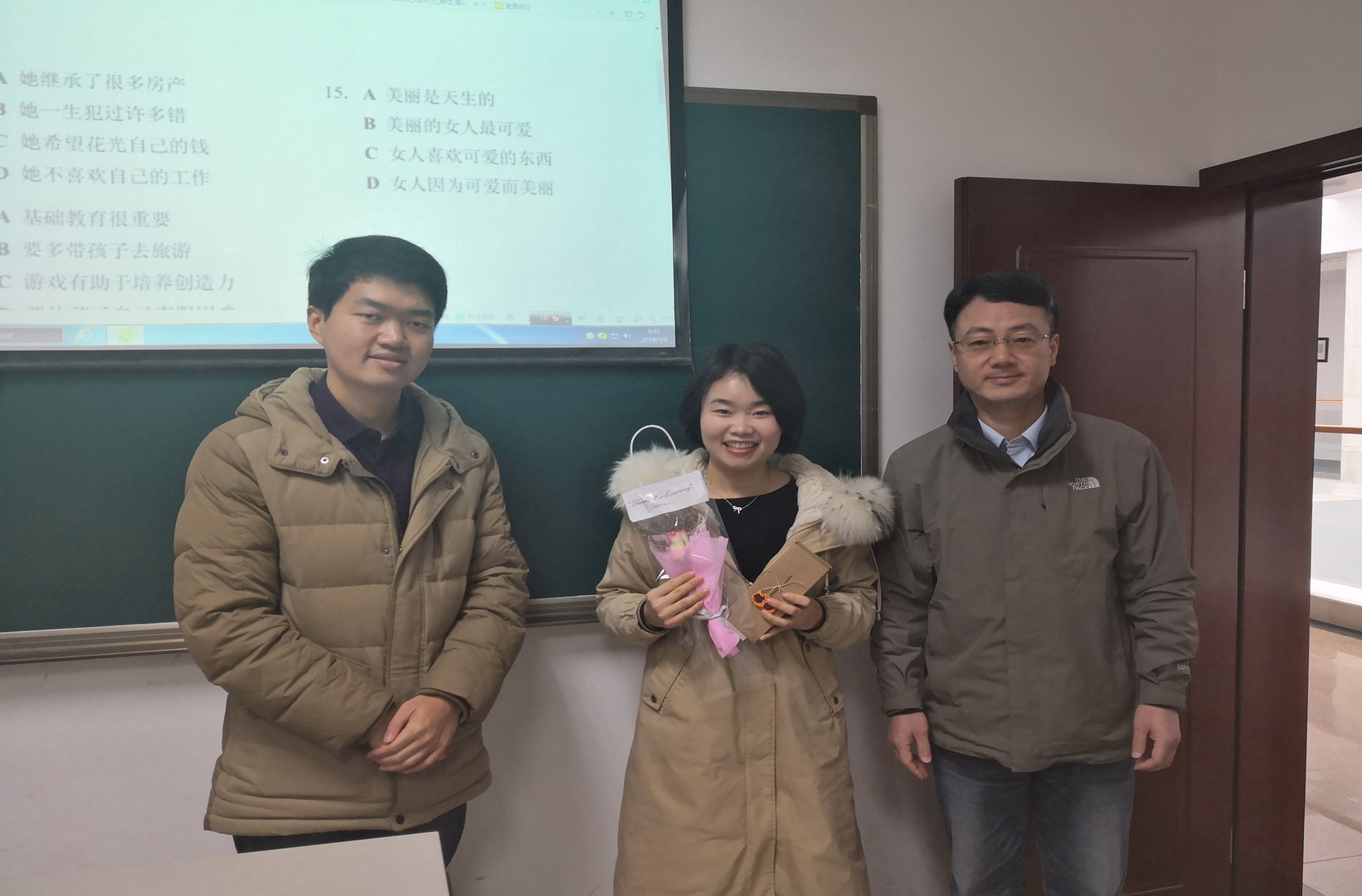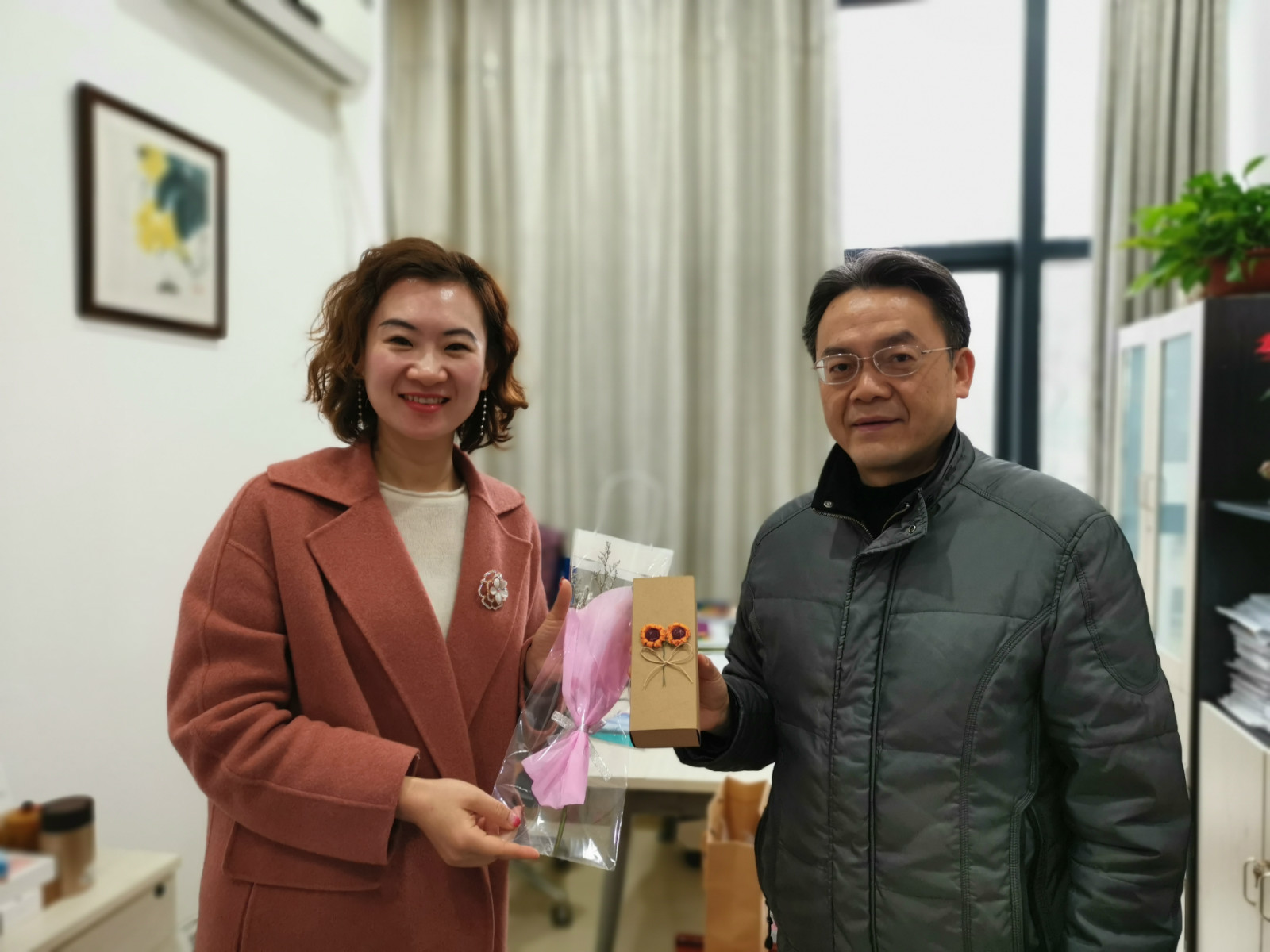 2019年3月8日上午太阳成集团tyc122cc紫云楼211教室,老师正在忙碌着为职工答疑解难。“不好意思,打扰一下”,教室的门被有礼貌地敲开,让人意想不到的是,走进门口的是手捧鲜花的李航副经理!李航副经理为李丹老师送上美丽的花束和小点心,并解释道:“今天是国际妇女节,我们来为老师送上节日的祝福!也祝各位女同学节日快乐!”原来是李航副经理代表太阳成集团tyc122cc为公司女教工送上国际“三八”妇女节的祝福。各位老师向院领导表达感谢,在场同学们报以热情的掌声。