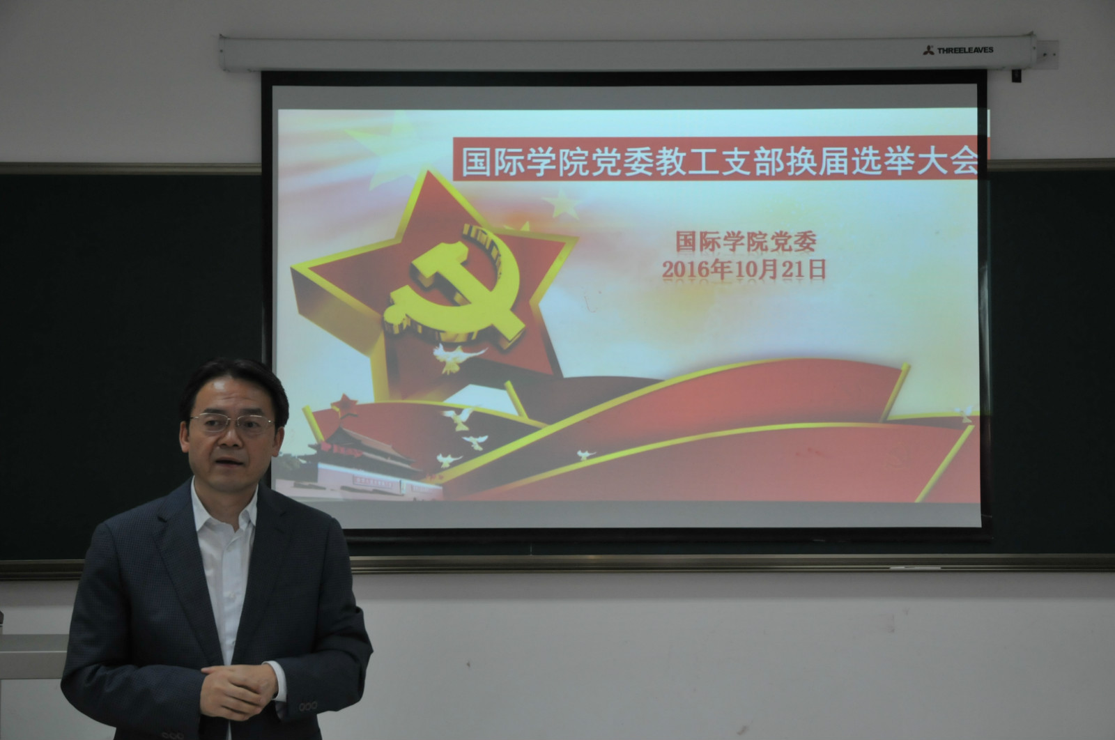 2016年10月21日下午3:30国际公司党委教工支部在紫云楼312教室召开全体党员大会暨教工支部换届选举大会。
