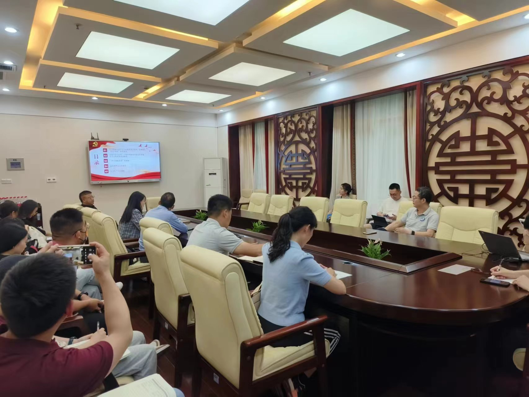 2023年6月2日下午2点半,太阳成集团tyc122cc全体教职员工在紫云楼签约室参加本年度第四次政治理论学习,根据《中共122cc太阳成集团官网委员会教职工政治理论学习实施意见》和公司工作安排,本次政治理论学习由马若晨、耿军、杨锐、何汉儒组成的第六组主讲人团队承担,会议由李航副经理主持。