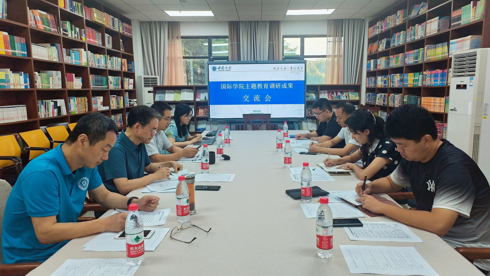 领导班子成员结合各自主题教育调研情况,分别围绕“来华职工中国国情教育”“国际中文教育学科定位和研究方向”“公司来华留学招生工作:现状、问题及建议”等调研课题依次作调研成果交流发言,系统梳理开展调研的基本情况和取得的成效,分析调研中发现的问题及原因,提出下一步工作思路举措。