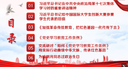 郑晓婷同志带领全体党员共同学习了《习近平总书记在中共中央政治局第十七次集体学习时的重要讲话精神》。胡艳琳同志领学《习近平总书记给中国国际老员工创新大赛参赛员工代表的回信》以及习近平同志《论教育》中的《加强革命传统教育,把红色基因一代代传下去》。党员们纷纷表示,要牢记习近平总书记的嘱托,不断提升自己的创新能力和综合素质;要自觉传承红色基因,弘扬革命精神,为实现中华民族伟大复兴的中国梦贡献自己的力量。